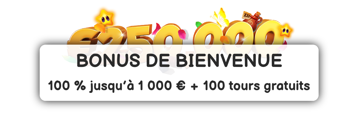Le bonus de bienvenue peut atteindre 100% à 150% du dépôt initial avec un plafond de 500-750€, accompagné de 200 tours gratuits répartis sur plusieurs jours.